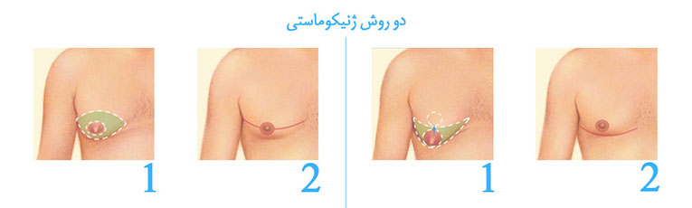 عمل ژنیکوماستی معمولاً حدود یک تا دو ساعت طول می کشد. عمل جراحی تحت بیهوشی عمومی انجام می شود. این یک عمل سرپایی است و بیمار بعد از عمل به خانه برمی گردد. تکنیک های مختلفی برای این عمل استفاده میشود. لیپوساکشن معمولترین روش برای انجام این عمل است که معمولا به بیمارانی توصیه میشود که بزرگ بودن سینه آنها به دلیل وجود بافت چربی اضافه است. روش دیگر تکنیک برش است و برای افرادی توصیه میشود که بافت غددی سینه آنها یا پوست اضافی آن باید برداشته شود یا محل قرار گرفتن نوک پستان باید تغییر کند تا حالت طبیعیتری به خود بگیرد. در این روش، جراح برشهایی در اطراف هاله سینه و یا درون چربی طبیعی سینه ایجاد میکند و بافت غدد و پوست اضافه را بر میدارد. روش آخر ترکیبی از این دو روش است که برای کسانی که هم چربی اضافه هم پوست افتاده دارند توصیه میشود. در نهایت محل برش بخیه زده میشود و با بانداژ پوشانده میشود.